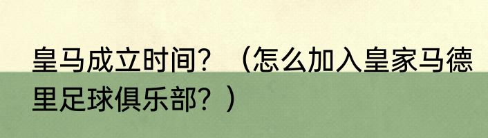 提及皇马成立时间?(怎么加入皇家马德里足球俱乐部?)的相关内容,许多人不太了解,来看看小敏的介绍吧!