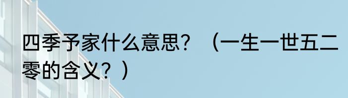 提及四季予家什么意思?(一生一世五二零的含义?)的相关内容,许多人不太了解,来看看小勤的介绍吧!