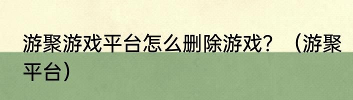 游聚游戏平台怎么删除游戏?(游聚平台)