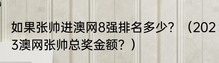 提及如果张帅进澳网8强排名多少?(2023澳网张帅总奖金额?)的相关内容,许多人不太了解,来看看小立的介绍吧!