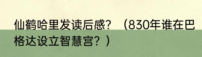 仙鹤哈里发读后感?(830年谁在巴格达设立智慧宫?)