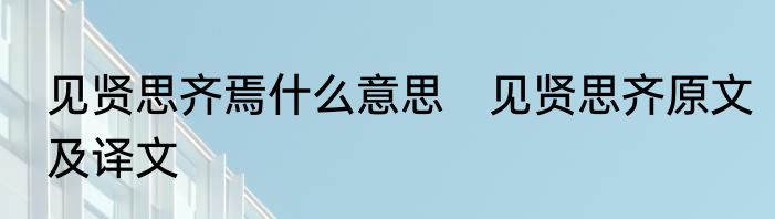见贤思齐原文及译文?