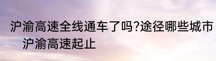 沪渝高速全线通车了吗?途径哪些城市?