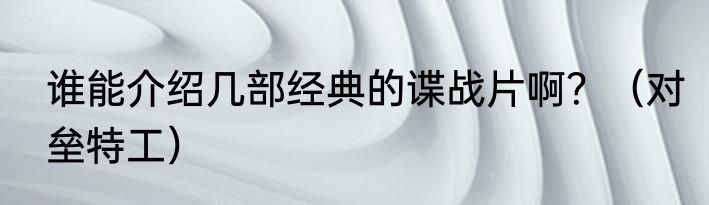 谁能介绍几部经典的谍战片啊?(对垒特工)