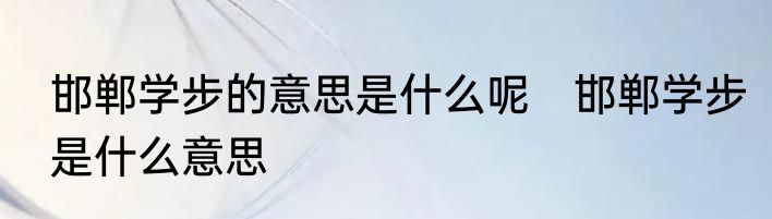 邯郸学步的意思是什么呢 邯郸学步是什么意思