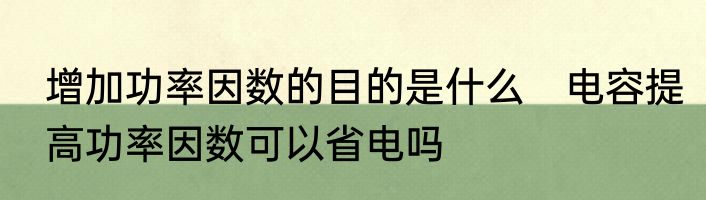 增加功率因数的目的是什么 电容提高功率因数可以省电吗