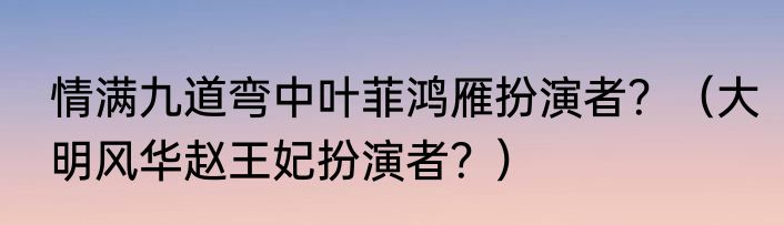 提及情满九道弯中叶菲鸿雁扮演者?(大明风华赵王妃扮演者?)的相关内容,许多人不太了解,来看看小贞的介绍吧!