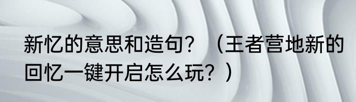 提及新忆的意思和造句?(王者营地新的回忆一键开启怎么玩?)的相关内容,许多人不太了解,来看看小薇的介绍吧!