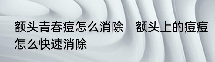 额头青春痘怎么消除 额头上的痘痘怎么快速消除